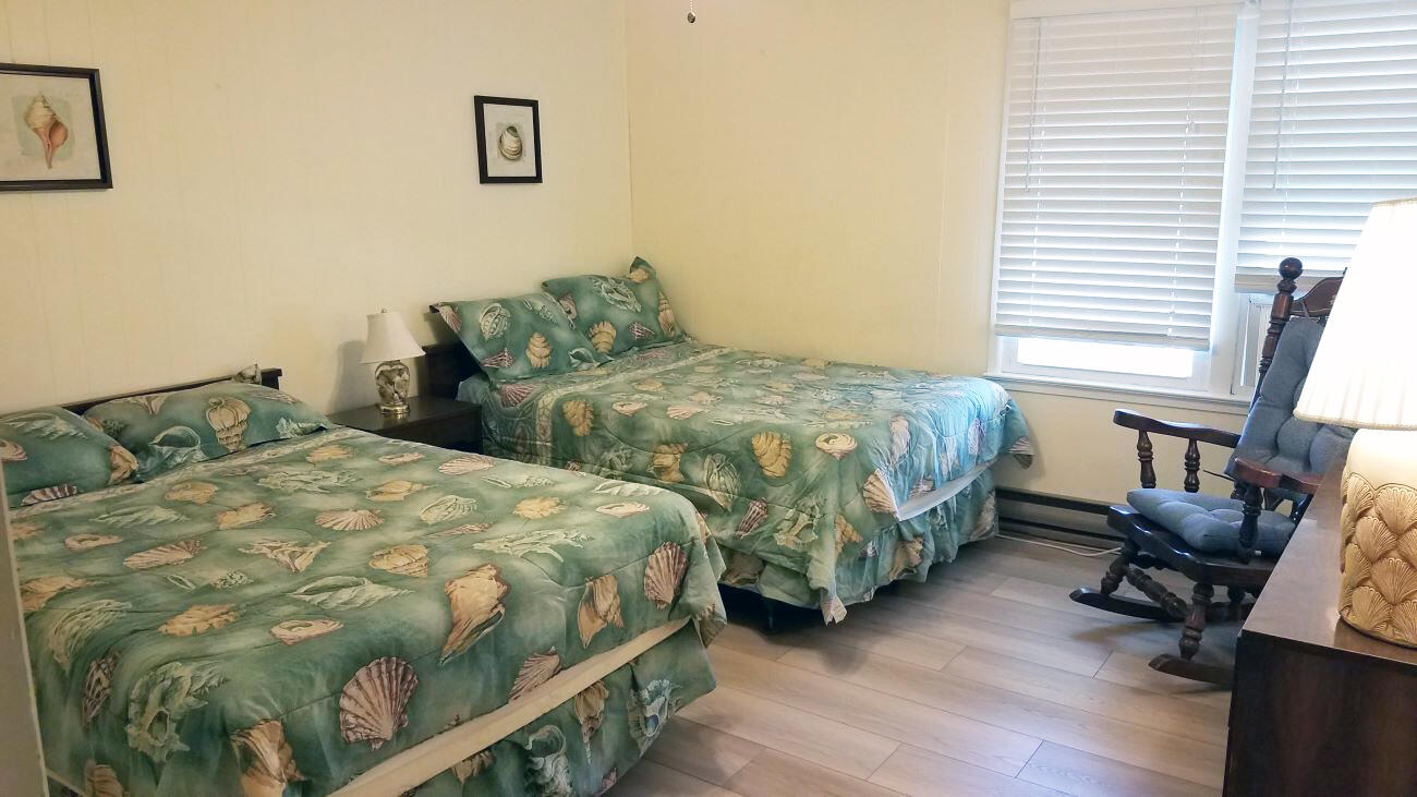 Brass Eagle 3 is a is a quaint condominium located on the ocean block. This three-bedroom, one and a half-bathroom condo has a furnished balcony with a partial ocean view. This condo is the perfect place for you and your family to call home for a week! Brass Eagle 3 is one of Ocean City's finest vacation rentals.The spacious living room is furnished with two matching sofas, two chairs, and a television. Both sofas double as full-size sleeper sofas. Many windows allow plenty of natural light to brighten the space. Right off the living room is a dining area, perfect for cozy meals with the family. Next to the dining area is the fully-stocked kitchen with cute coastal decor. The master bedroom has a queen-size bed. The second bedroom has two double beds. The third bedroom has two twin beds. This property comfortably sleeps up to twelve people, so bring the whole family!