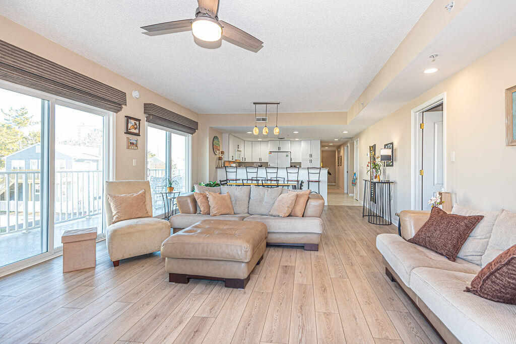 Captiva Bay 105 is a stylish, clean luxury condominium right on the bay. This three-bedroom, two-bathroom condo has a nicely furnished balcony overlooking the breathtaking Assawoman Bay and marshes. This unit is the perfect place for you and your family to call home for a week! Captiva Bay 105 is one of Ocean City's finest vacation rentals.The living room is stylishly furnished with comfy leather couches facing a television. There is a ceiling fan and a fireplace, making the room adaptable to any kind of weather. The sliding doors allow plenty of natural light to fill the room. Just past the living room is a small dining area, perfect for cozy meals with the family. Next to the dining area is a spacious, fully-stocked kitchen with a wide counter top, just right for grabbing a quick snack. The master bedroom has a king-size bed, a personal television, a private bathroom, and access to the balcony. The second bedroom has a king-size bed, a personal television, a private bathroom, and a ceiling fan. The third bedroom has a king-size bed and a ceiling fan. This property comfortably sleeps up to six people, so bring the whole family!