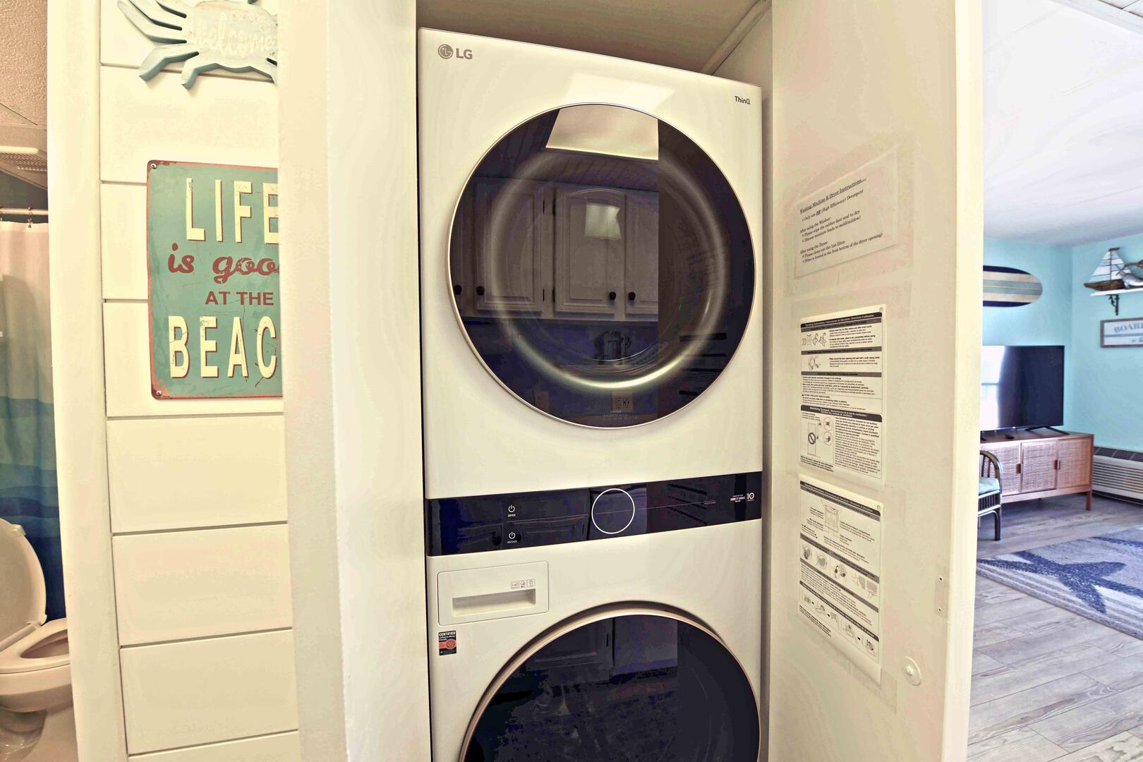 Condo Amenities: two air conditioning units, two TVs, free WiFi, cable TV, stacked washer and dryer, refrigerator, microwave, coffee maker, toaster, stove, disposal, and dishwasher