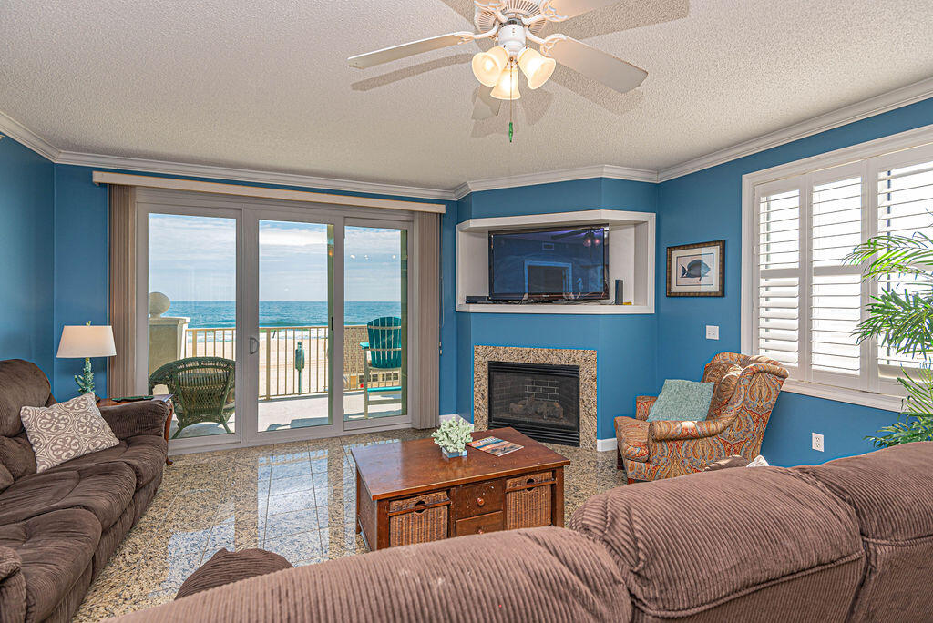 Oceans Edge 301 is a luxury beachfront condominium. This three-bedroom, two-bathroom condo has a furnished balcony overlooking the breathtaking Atlantic Ocean. This unit is the perfect place for you and your family to call home for a week! Oceans Edge 301 is one of Ocean City's finest vacation rentals.The spacious, yet warm living room is furnished with two sofas, a recliner, a fireplace, and a television. The sliding balcony doors allow plenty of natural light to brighten the space. Right off the living room is a small dining area, perfect for cozy meals with the family. Also off the living room is a wet bar. Next to the dining area is the spacious, fully-stocked kitchen with a wide, granite counter top, just right for grabbing a quick bite. The master bedroom has a king-size bed, a television, a private bathroom, and access to the balcony. The master bathroom features a jacuzzi. The second bedroom has two pyramid beds and a television. The third bedroom has two queen beds and a television. The second bathroom is located in the hallway. This property comfortably sleeps up to nine people, so bring the whole family!