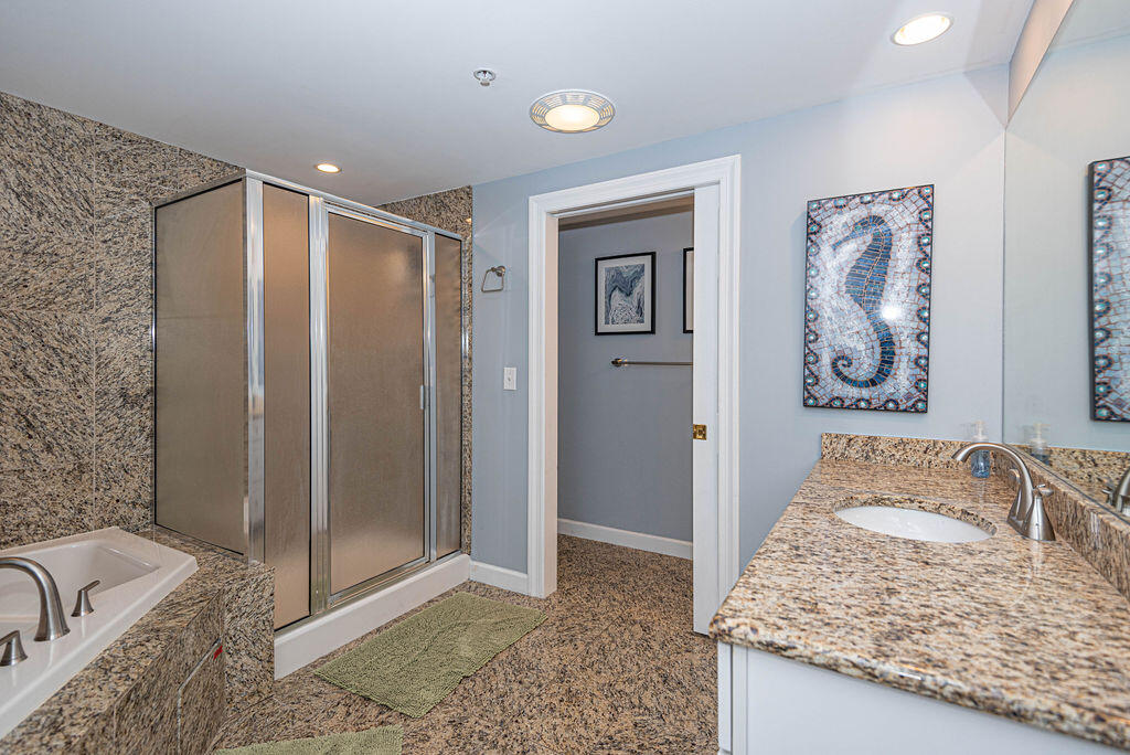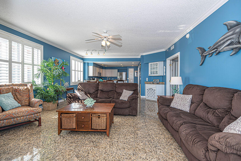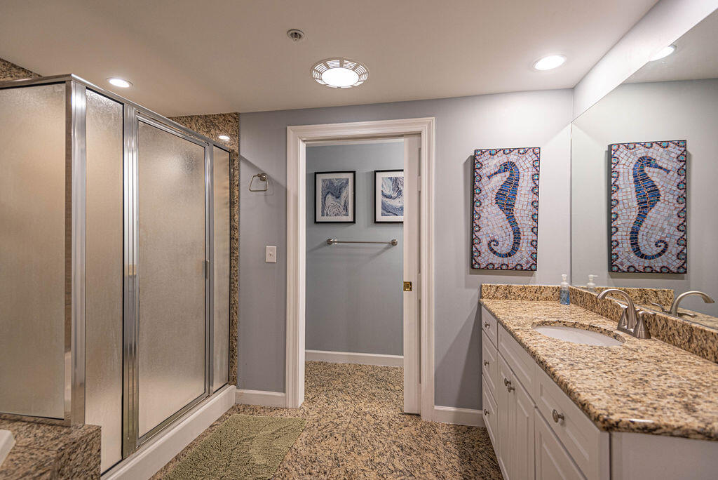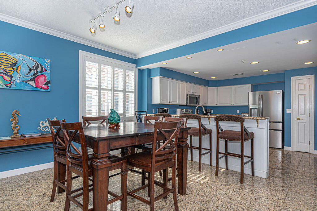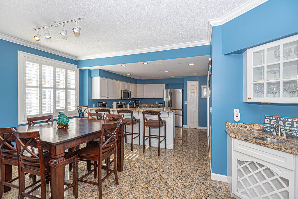Unit 301 has the following amenities: central air conditioning, shops, restaurants, one assigned parking space, an elevator, four TVs, (2 Smart TVs), 3 DVD players, cable TV, free WiFi, ceiling fans, full-size washer and dryer, refrigerator, microwave, coffee maker, toaster, stove, disposal, dishwasher, and an outdoor foot shower.