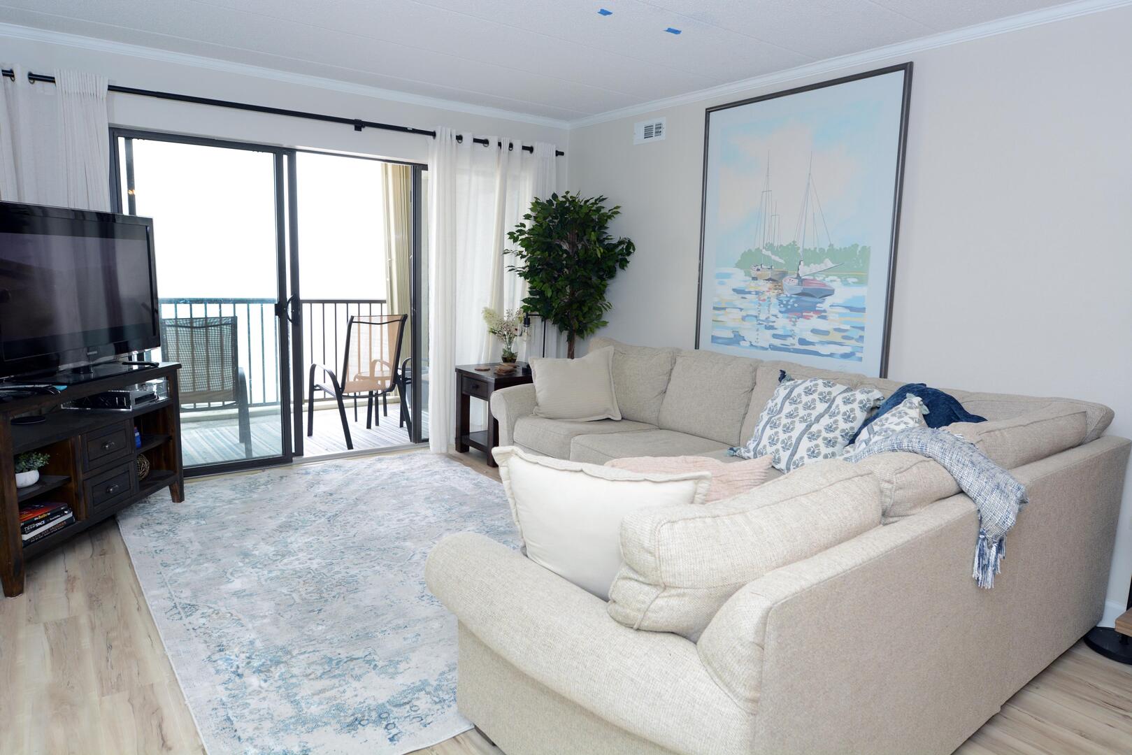 Sandpiper Dunes 1004 is one of Ocean City's finest vacation rentals and will make you feel like you're at a retreat . Bright colors and floral print make the setting tranquil, but the modern style provides some adventure. Make the most of your vacation by going swimming in the pool or relaxing on the balcony and watching the sun rise over the ocean. This condo is the perfect place for you and your family to call home for a week. Come stay at the Sandpiper Dunes and make wonderful memories that will last you and your family a lifetime!Bed sizes: