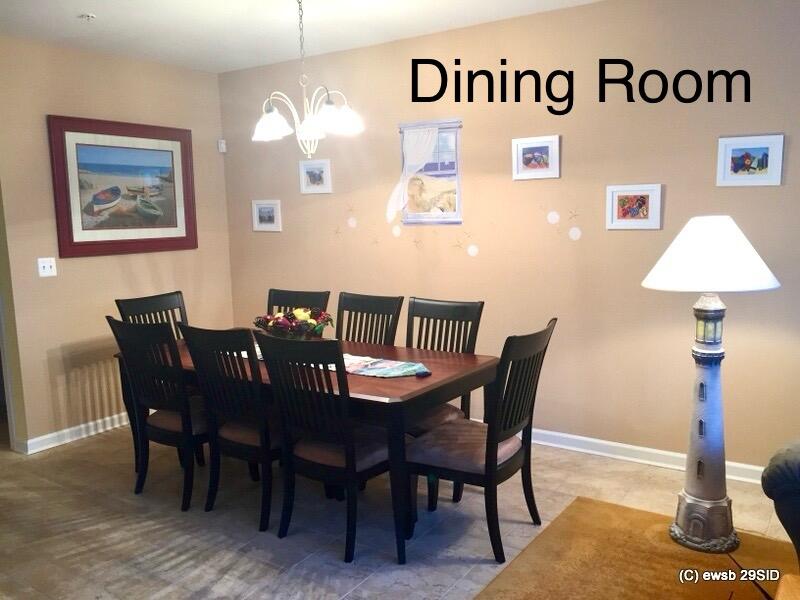 Sunset Island 29 is a luxury, bayside townhouse located in a gated community. This beautiful five-bedroom, four and a half bathroom townhouse has two living areas on each side of the kitchen and dining areas offering plenty of room for entertaining your family and guests. There is also a half bath located off the kitchen on this floor also. This townhouse is the perfect place for you and your family to call home for a week! Sunset Island 29 is one of Ocean City's finest vacation rentals.The spacious living room is bright and cheery, furnished with a comfortable sofa, ottoman, multiple arm chairs, and a television. The glass-paneled balcony door allows plenty of natural light to brighten the space. Right off of the living room is a small dining area with table and seating for 4 people. Past that is a second, larger dining area able and seating for 8. The fully-stocked kitchen has a granite island with stools to offer more seating to grab a quick bite to eat. There is a half bath located on this floor also. the half-bathroom. There are 3 bedrooms on the third floor. The master bedroom has a king-size bed, a television and a private master bathroom with a separate shower and garden tub. The second bedroom has a queen bed and the third bedroom has bunk beds, another full size bathroom is located in the hallway. The fourth bedroom is located on the fourth-floor loft and has a queen-size bed, television and sitting area with access to the top balcony. There is also a full bathroom on this level. The entry level den doubles as the fifth bedroom and has a queen bed. The fourth full size bathroom is located on the entry level as well. This property comfortably sleeps up to ten people, so bring the whole family!